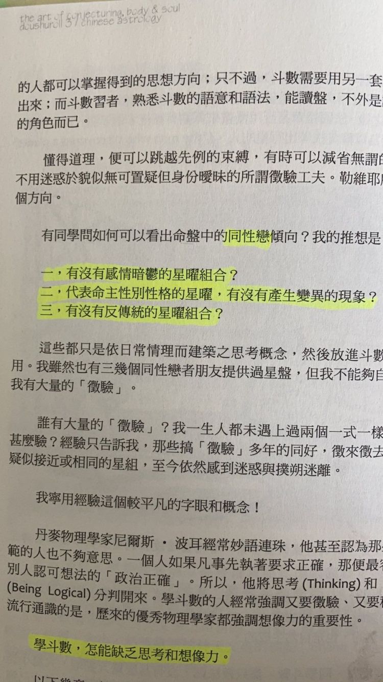 八卦友傳來某某後人紫微斗數「鴻文」,驟眼看好像曾經在某處看過,驀然靈光一閃,係啦!原來是照抄葉漢良老師《 斗數卷.卷三.推斷法則》第 174 頁。